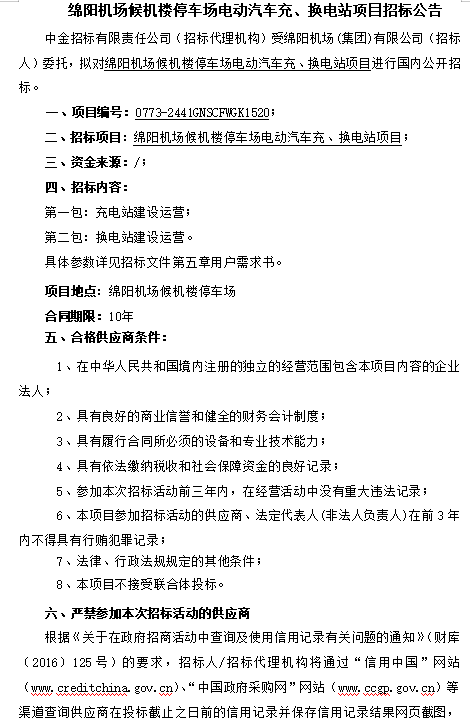 綿陽(yáng)機(jī)場(chǎng)候機(jī)樓停車場(chǎng)電動(dòng)汽車充、換電站項(xiàng)目招標(biāo)公告